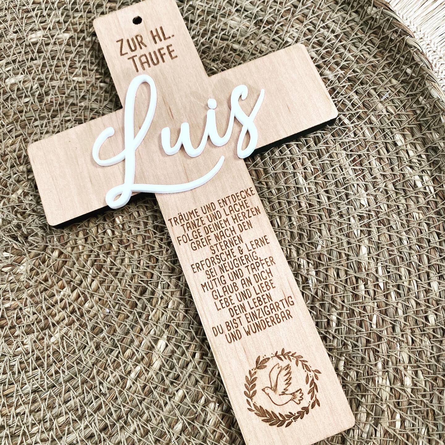 Set bestehend aus 17 MeilensteinenTaufkreuz personalisiert aus Massivholz mit Acrylschriftzug